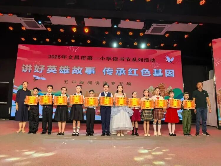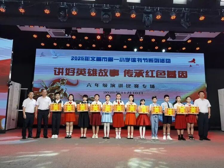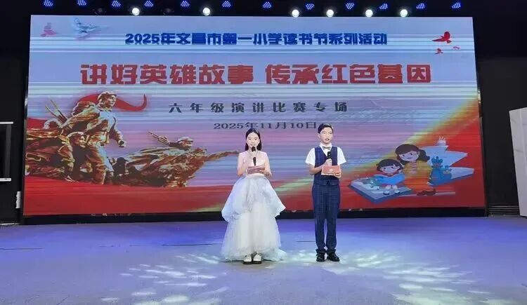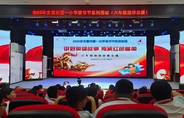 为深入落实立德树人根本任务,引导广大青少年铭记革命历史、传承红色精神,文昌市第一小学于2025年读书节期间隆重举办了“讲好英雄故事 传承红色基因”主题演讲比赛。活动旨在通过讲述英雄故事,激励学生从中汲取榜样力量,培养爱国情怀、锤炼优秀品格。五、六年级学生分专场参与了此次活动,用真挚的情感和生动的语言,展现了新时代少年积极向上、锐意进取的精神风貌。