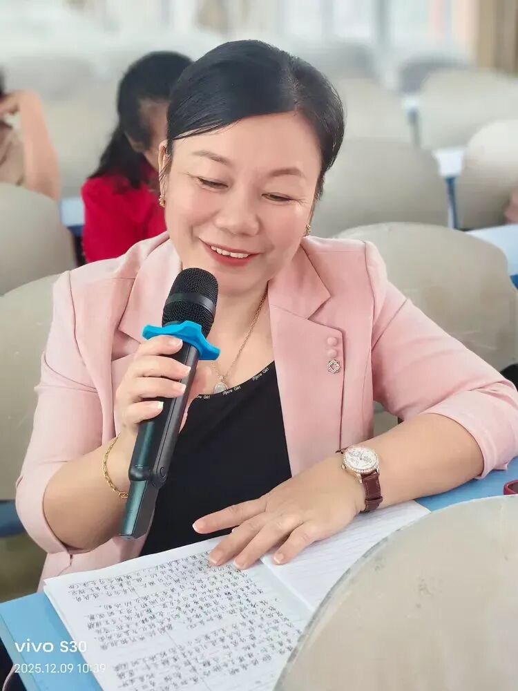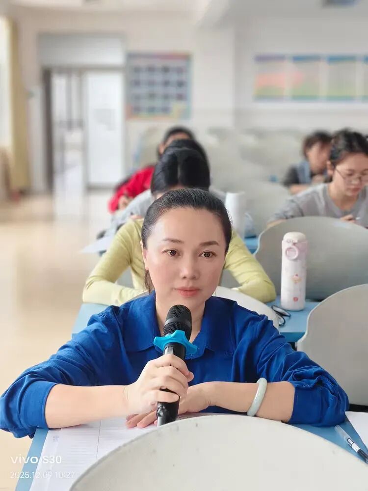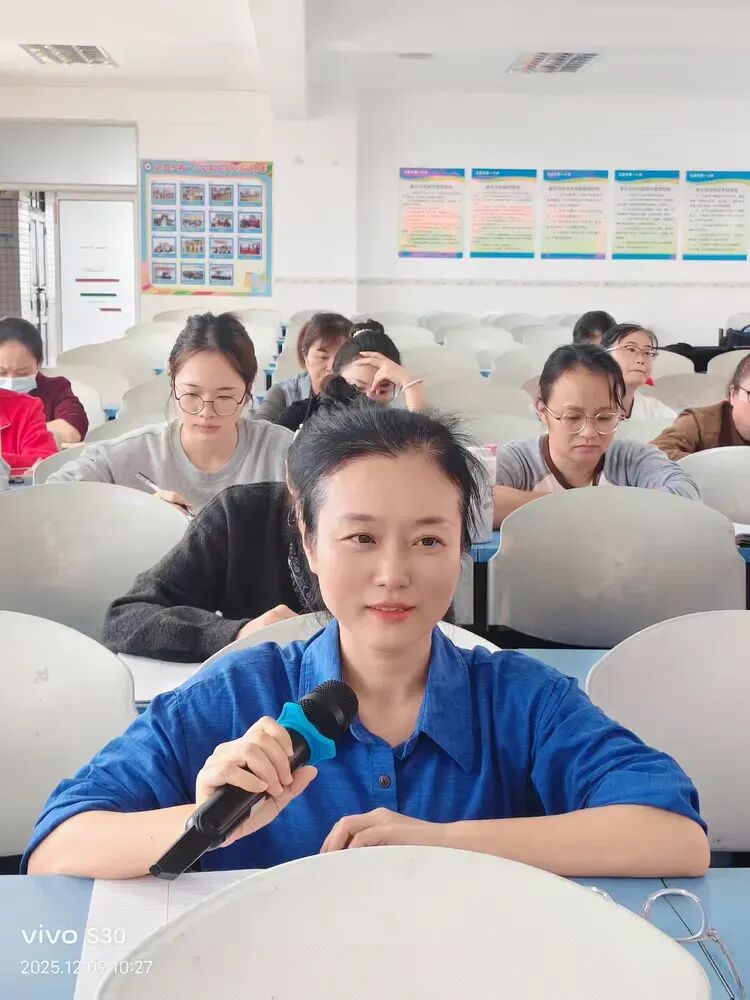 黄珍老师上完课后,在评课环节分享了自己的授课思路与反思。她谈到,本节课围绕预设教学目标推进,聚焦核心知识点,通过互动提问、实例讲解等方式引导学生理解掌握,同时尝试用多样形式调动课堂氛围。她也坦诚梳理了不足,比如对个别学生的关注还需加强,期待能听取各位老师的宝贵点评,后续不断打磨教学细节,提升课堂实效。