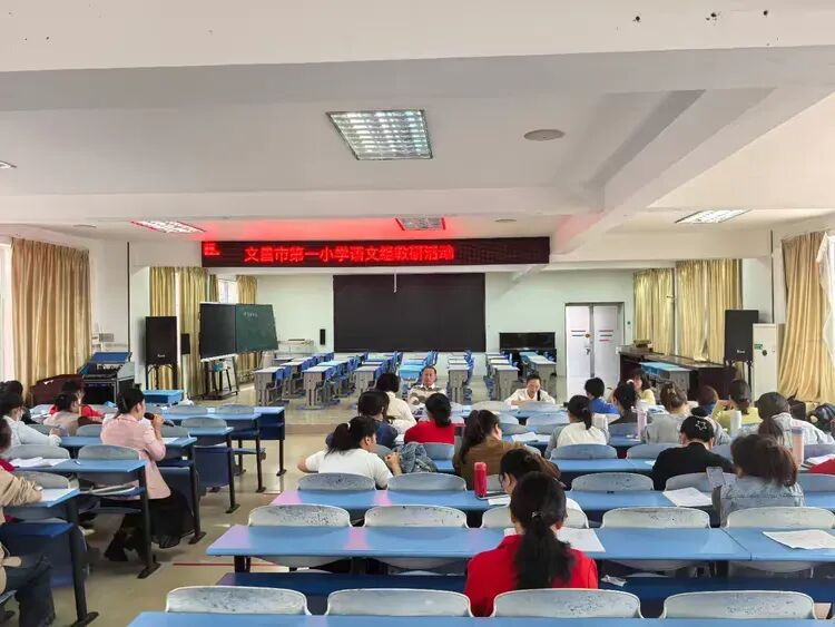 为优化课堂教学模式,提升教师课堂教学设计与驾驭能力,夯实语文教学实效,搭建教师交流研讨、共促成长的平台,2025年12月10日上午,文昌市第一小学每周一次的语文教研活动如期举行。韩东升副校长出席活动,由学校教研室陈汝娇主任全程主持。六年级语文教师黄珍老师担纲授课,以一课时高效完成略读课文的教学任务。全体语文教师共同参与观摩研讨,聚力赋能语文教学高质量发展。