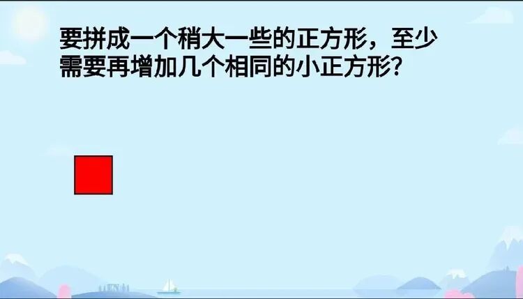 从1个小正方形出发,“要拼成稍大的正方形,至少需要增加几个小正方形?”带着问题,孩子们同桌合作,开启了一场“以形助数,以数解形”的思维探索之旅。