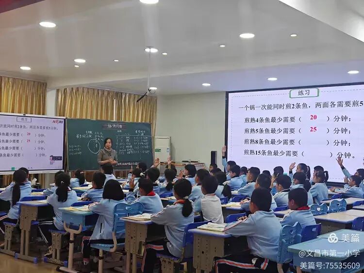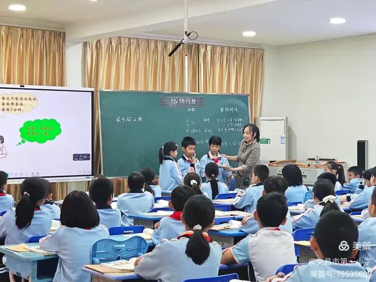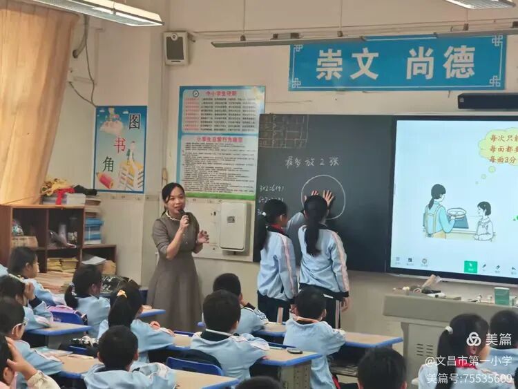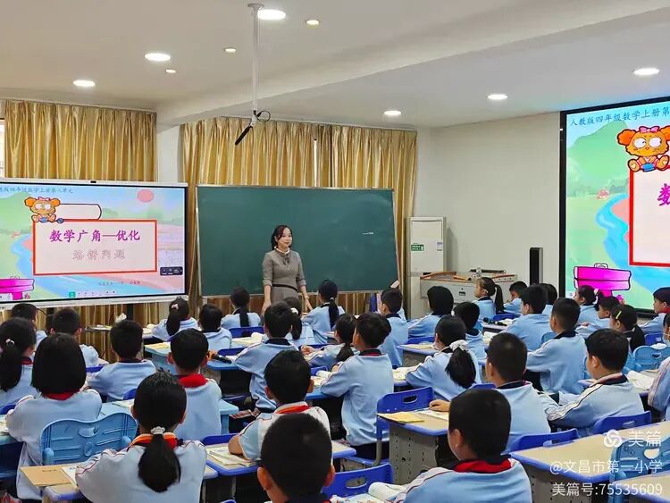 整堂课上,符老师从生活化的导入,到学生积极参与每次活动,再到学生上台展示以及全班互动,学生的思维始终跟着老师高速运转。这不仅使“优化思想”在课堂互动中生根落地,更点燃了孩子们的探索热情,让知识殿堂充满主动求索的活力。