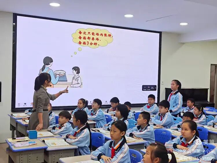 本节课的核心难点是“3张饼的最优烙法”,符老师处理极具巧思:让学生用上台演示,对比不同方案,通过。“看得见的过程”让学生直观理解对资源的充分利用。整节课让学生体会到运筹思想在生活中的实用价值,潜移默化地培养了“合理安排时间”的习惯。