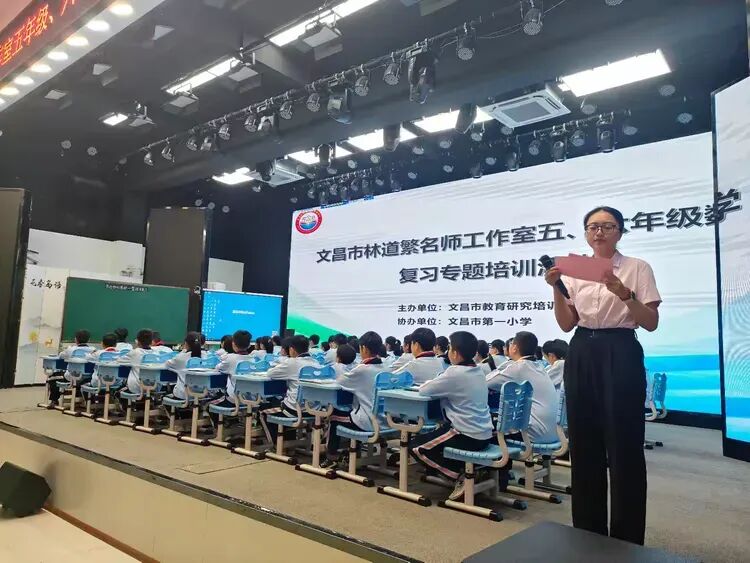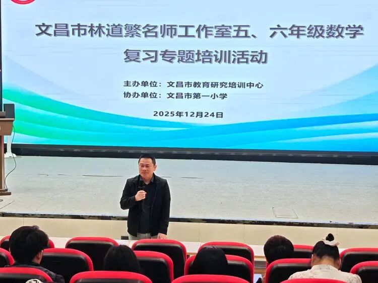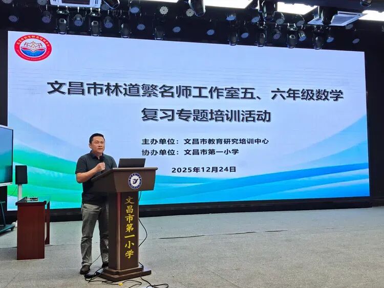冬日的校园,依旧暖意融融,研思的脚步从未停歇。为探究小学数学复习课的有效策略,切实提升学生学业质量,2025年12月24日上午,林道繁名师工作室五年级、六年级数学复习专题培训活动在文昌市第一小学和美厅顺利开展。来自各校的数学教师齐聚一堂,共研复习教学之道,共探课堂提质之法。