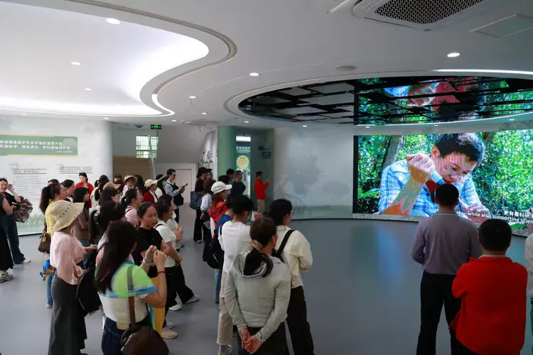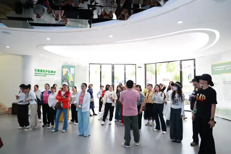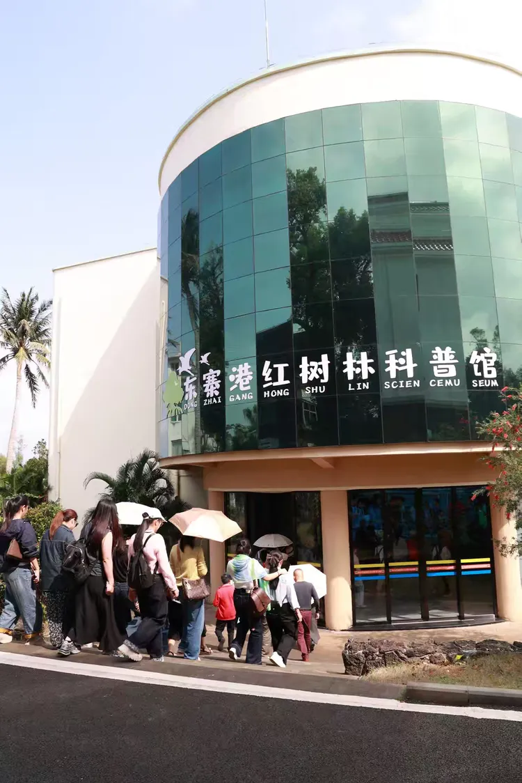 走进红树林博物馆,解锁海上森林的生态奥秘!馆内的科普展板详解红树植物胎生、泌盐的独特生存智慧,珍稀的动植物标本鲜活呈现湿地生物多样性,动态沙盘更重现了东寨港从地质变迁到生态绿洲的蜕变历程。老师们驻足聆听、细细探索,在沉浸式科普中读懂这片国际重要湿地的生态价值,感受自然与生命的神奇力量。