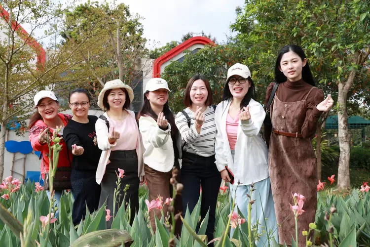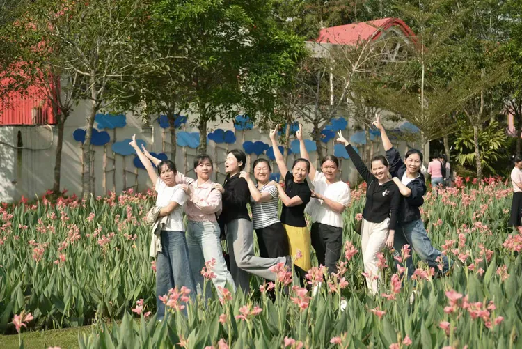 芳香花海成了天然背景板,老师们穿梭其间,抬手定格、并肩浅笑,让娇艳繁花与明媚笑颜相映成趣,把“三八”妇女节的美好与春日的浪漫一同珍藏。