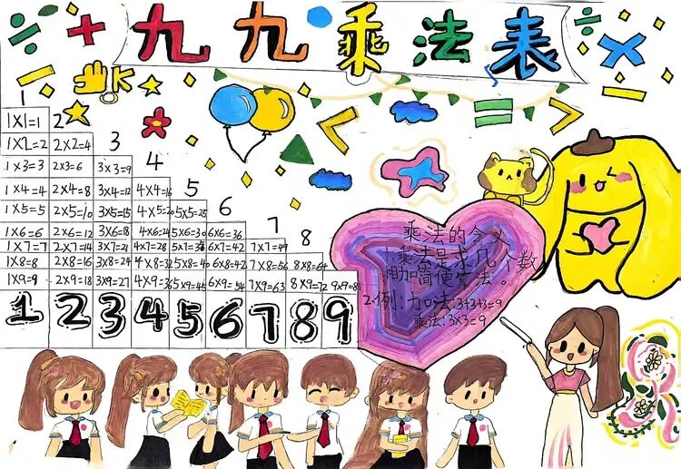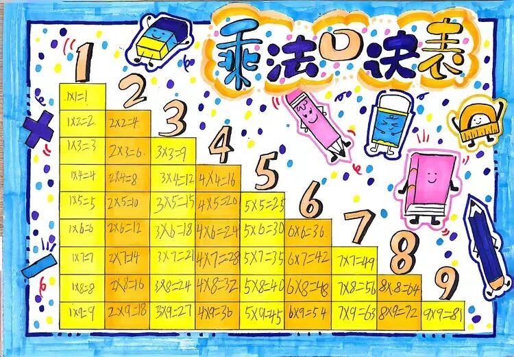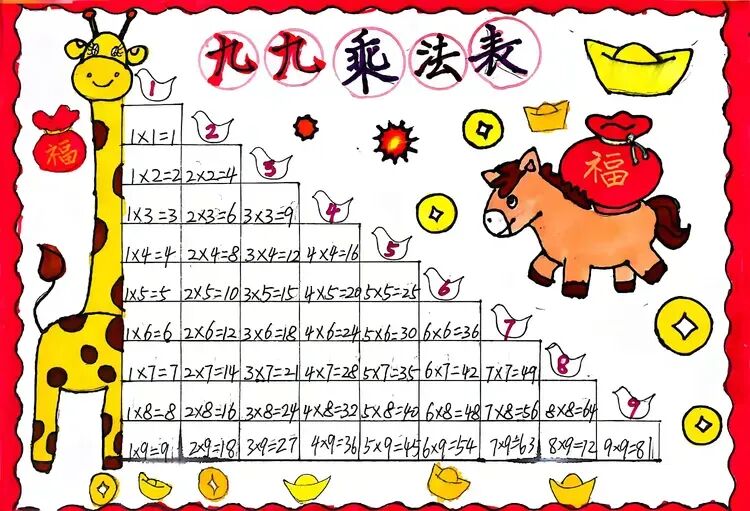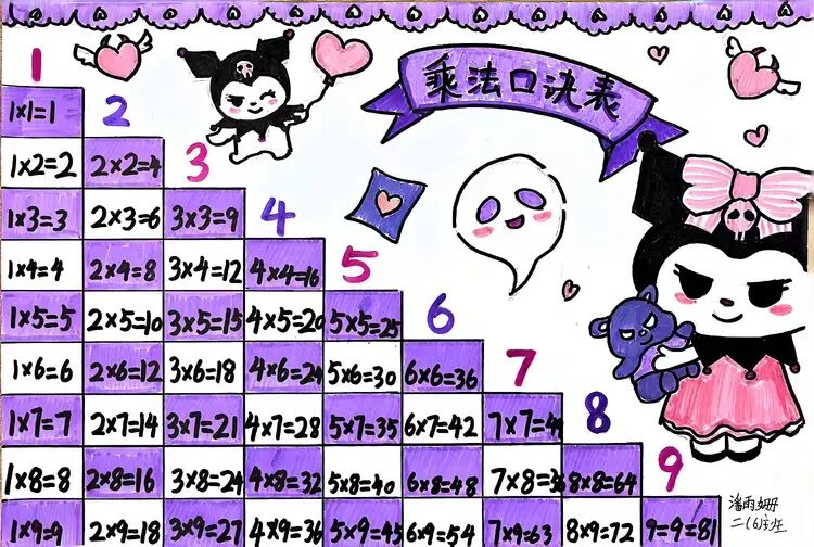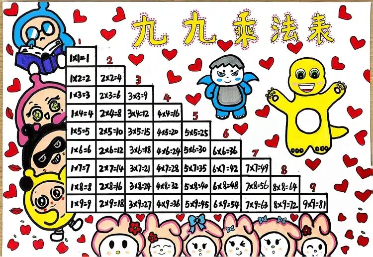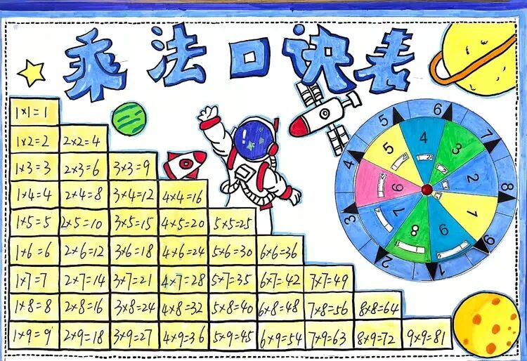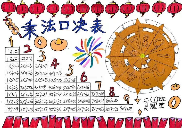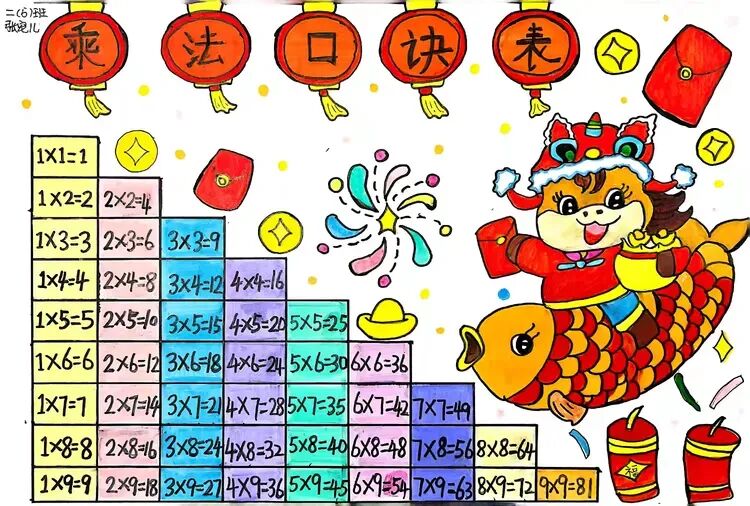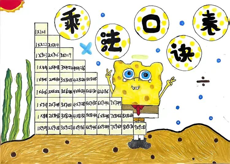 二年级这些手绘乘法口诀表太有创意了!每张都用不同的主题和卡通形象,比如海底世界、春节元素,还有海绵宝宝和小老鼠,色彩也特别丰富。不仅好看,还很实用,完整呈现了1-9的乘法算式,有些还设计了填空题和转盘,帮助记忆。