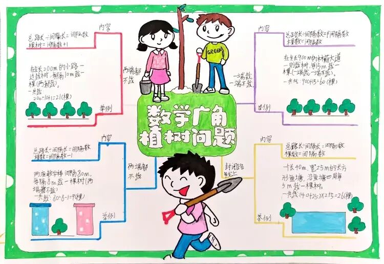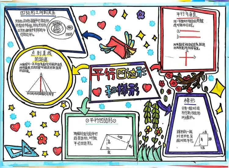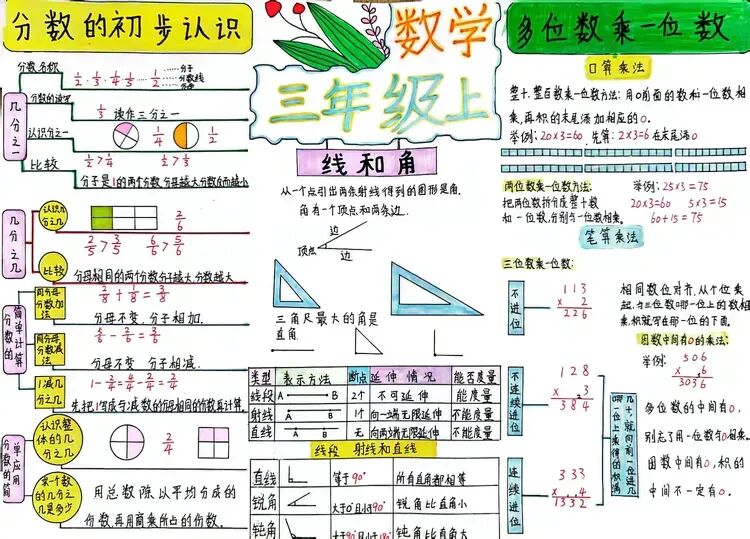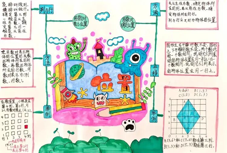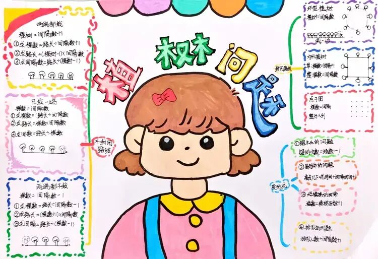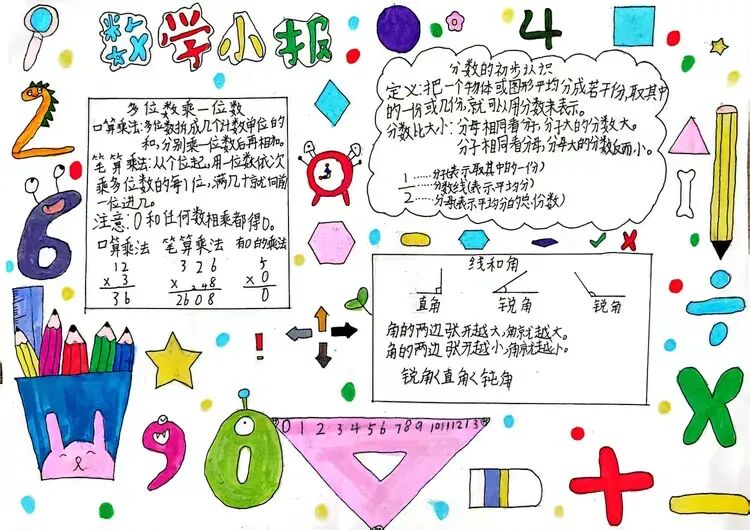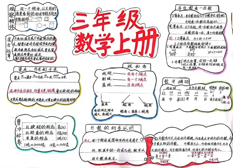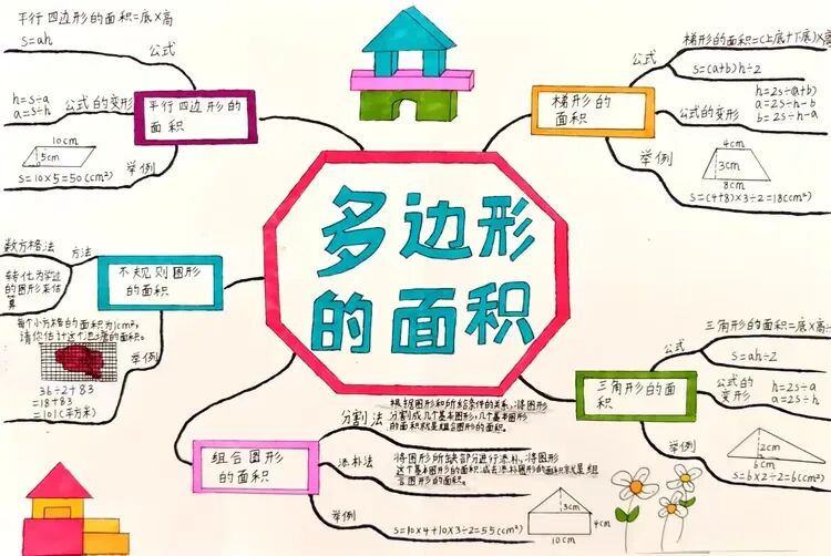五年级的同学们提交的作品亮点纷呈,知识完整、层次清晰且设计精巧,充分发挥了思维导图的工具价值。其中,“简易方程”小报图文并茂结合实例,融合抽象原理与现实情境;“小数乘除法”小报梳理出多个知识模块,明确核心要点并拓展应用,凸显知识的系统性;“多边形面积”作品则将实操体验转化为理性认知,强化了空间观念。