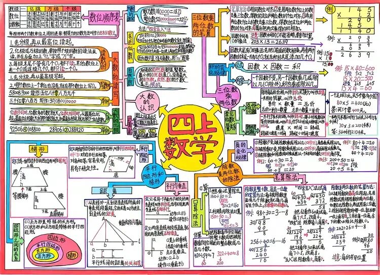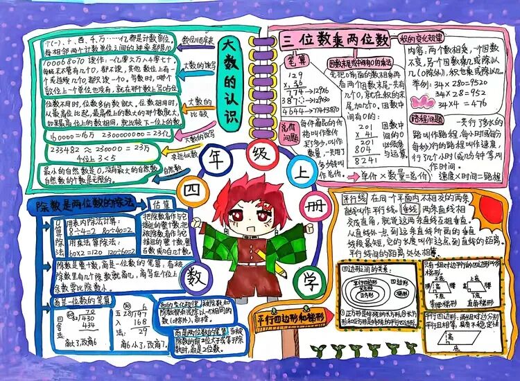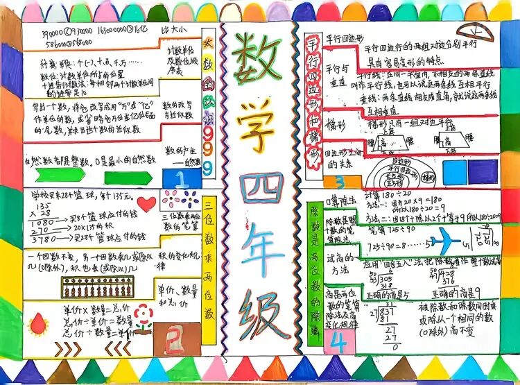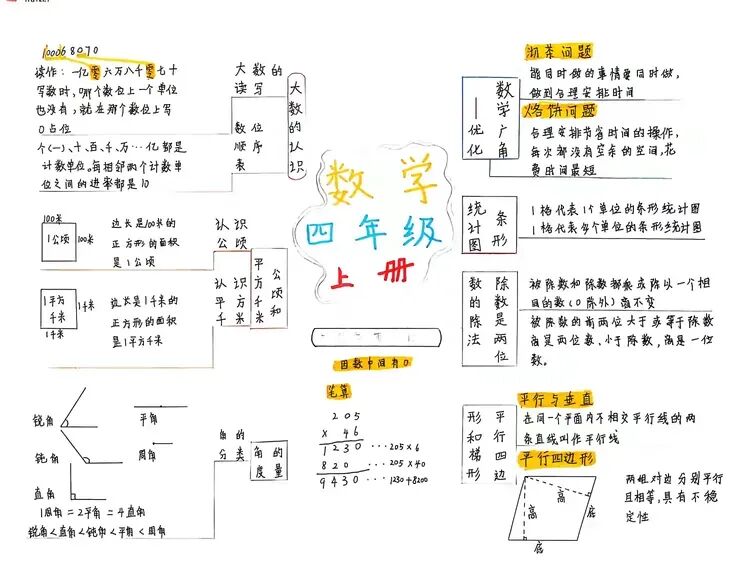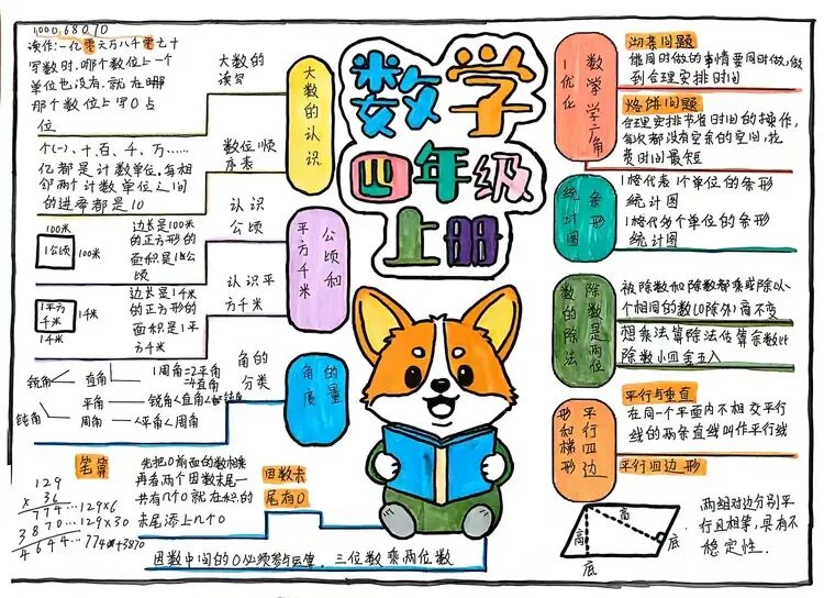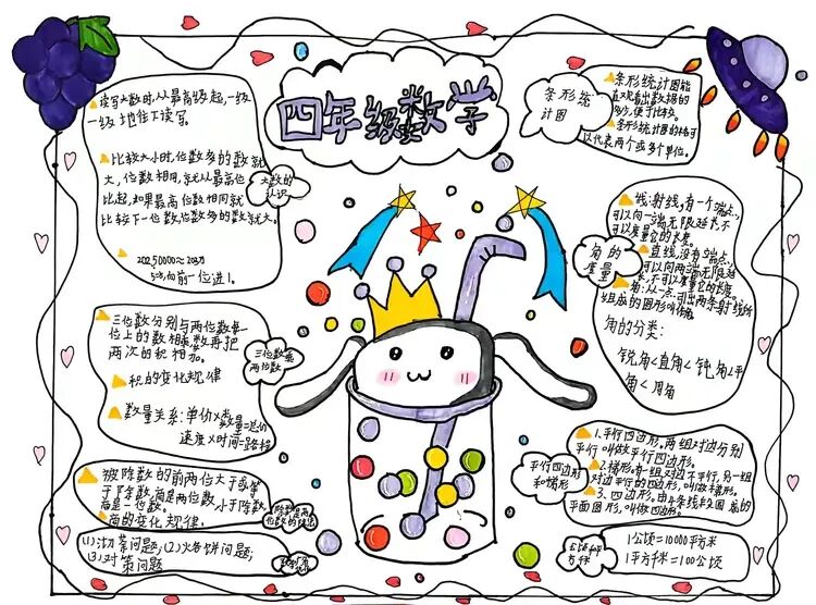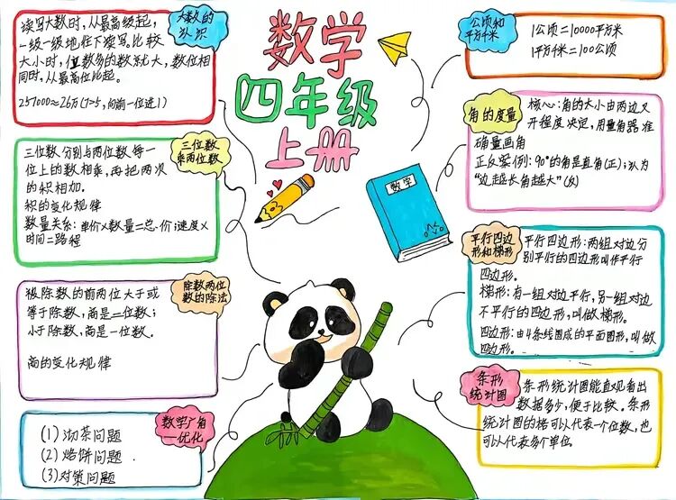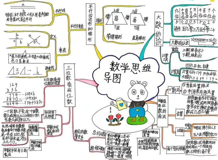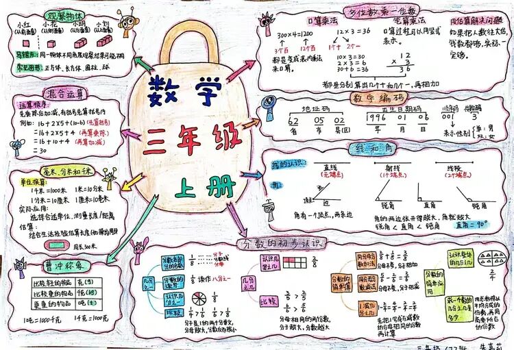 四年级的思维导图让数学跳出了课本,变成了跃然纸上的艺术!知识点如珍珠般串联,卡通形象和互动设计让学习充满乐趣,严谨的逻辑藏在萌趣的图案里,真正诠释了数学之美。