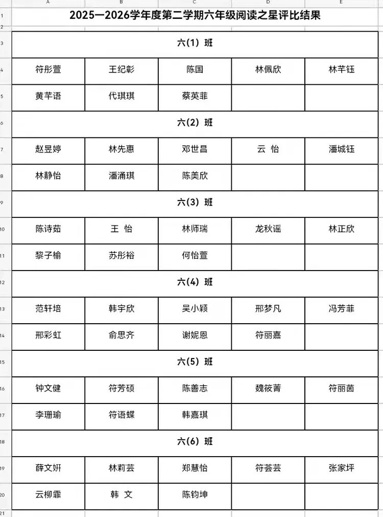 六年级阅读之星