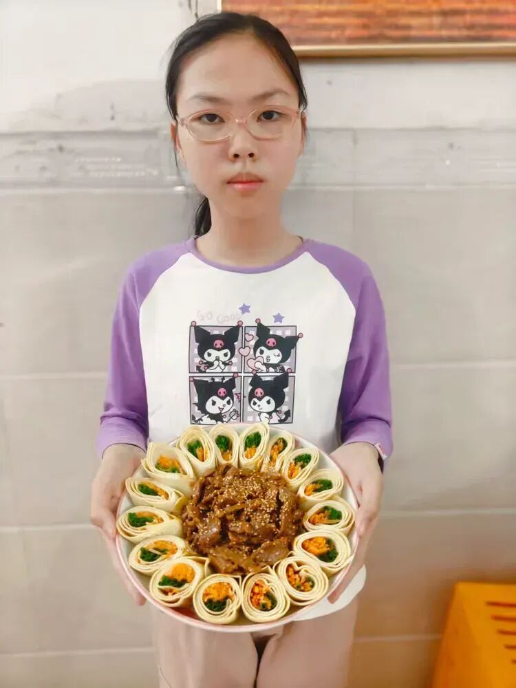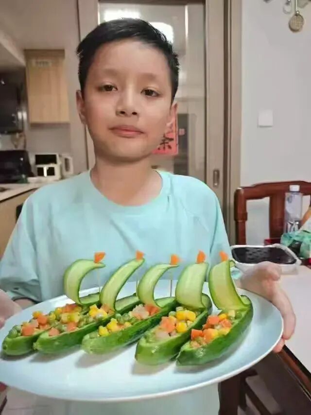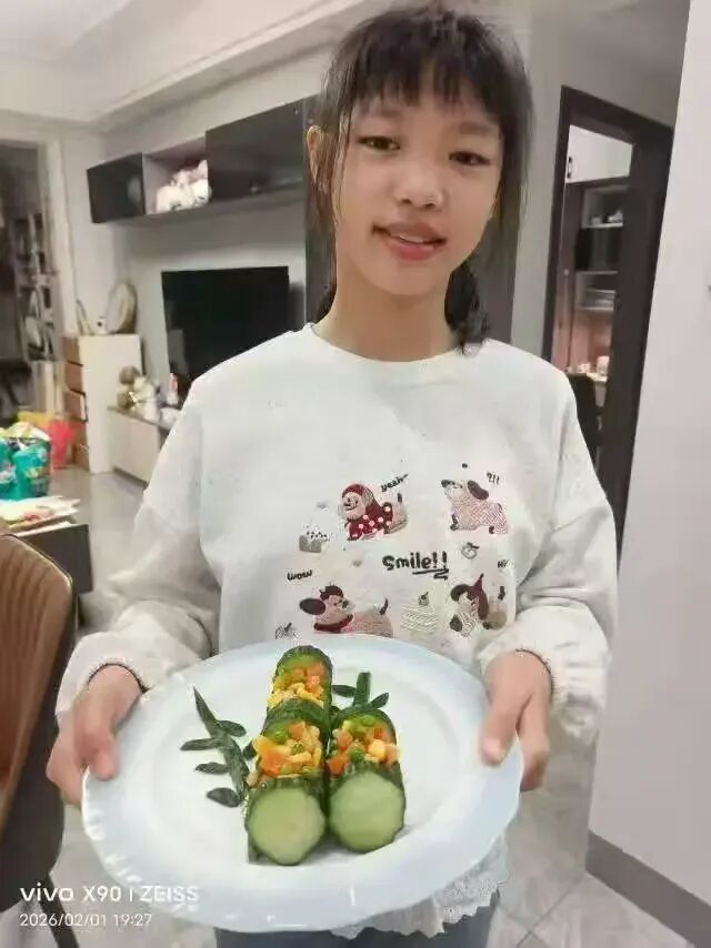 人间烟火气,最抚凡人心。告别书桌,化身小小美食家,厨艺秀环节让孩子们走进厨房,体验劳动的快乐。择菜、洗菜、切菜、翻炒,从简单的凉拌黄瓜、番茄炒蛋,到精致的小点心、家常小炒,孩子们亲手制作美味佳肴,动作虽略显生疏,却满是认真与用心。热气腾腾的饭菜里,藏着对家人的爱意;娴熟利落的动作中,是独立与担当的成长。在动手实践中,他们体会父母的辛劳,感受劳动的价值,用美食传递温暖,用厨艺点亮生活。