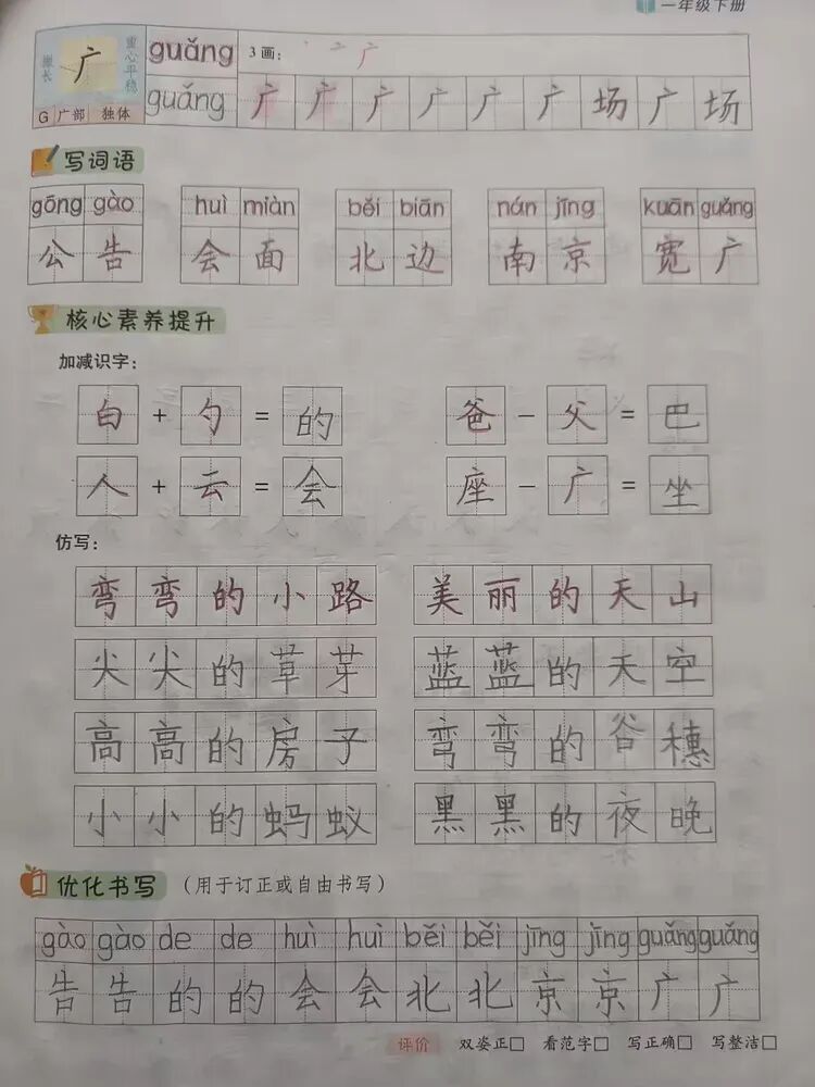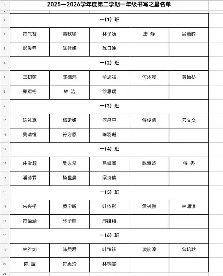 一年级书写之星