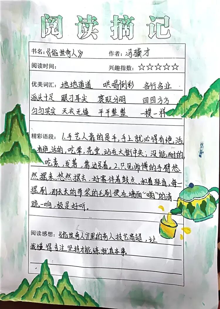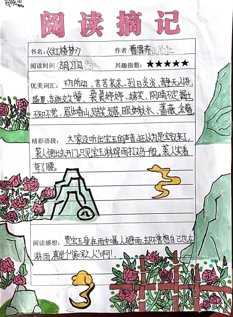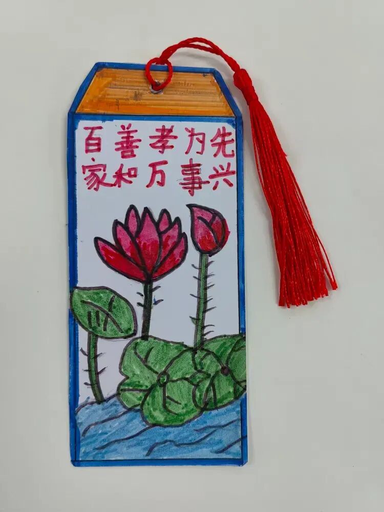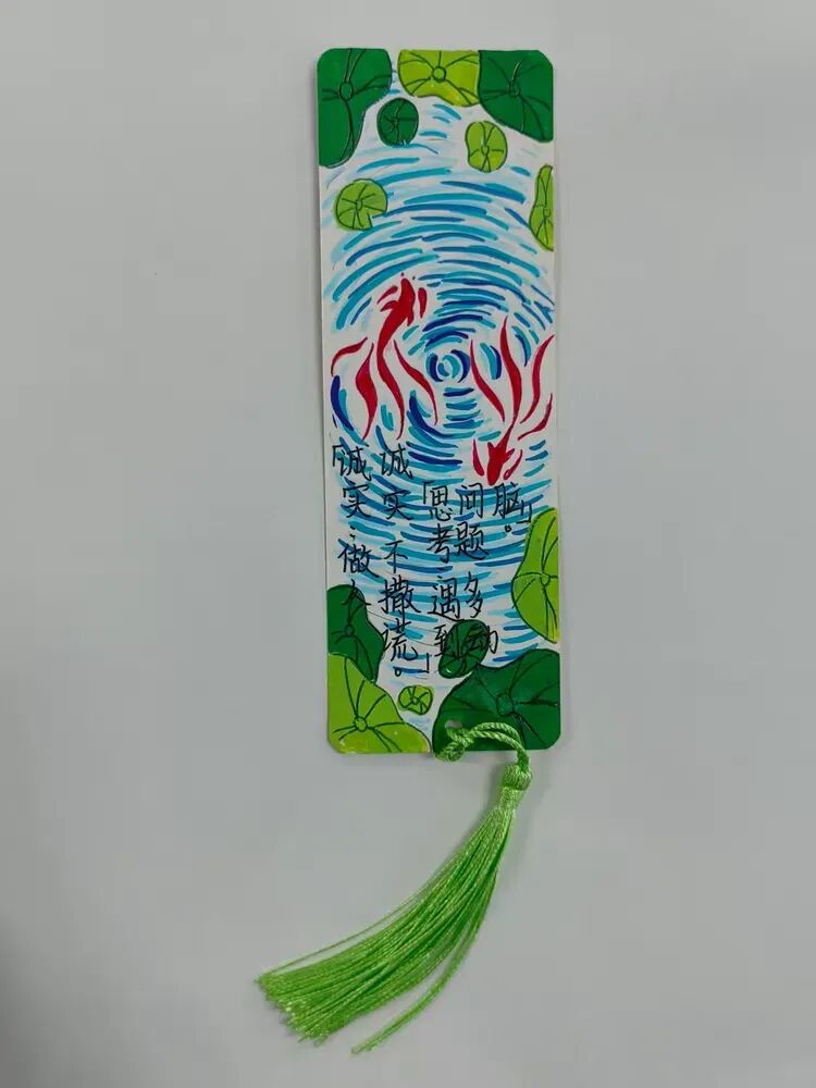 方寸书签,藏韵藏趣;巧手匠心,创意无限。书签之星们以创意为魂,以巧手为笔,制作出一枚枚独一无二的精美书签。彩纸、树叶、丝带、纽扣、手绘图案、经典诗句……多样的材料碰撞出创意火花,精致的设计承载着读书乐趣。有的书签清新淡雅,手绘花草生机盎然;有的书签古韵十足,书写诗词意蕴悠长;有的书签创意满满,融入卡通形象活泼可爱。小小书签,既是阅读的好伙伴,也是艺术的小创作,孩子们用巧手装点书香,让阅读更有仪式感。