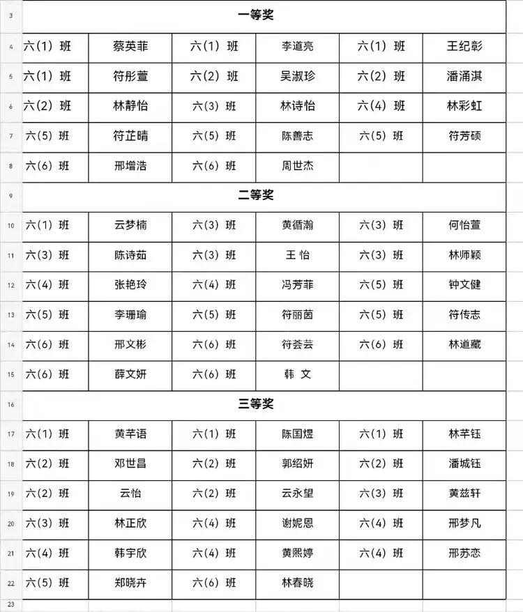 六年级厨艺秀获奖名单