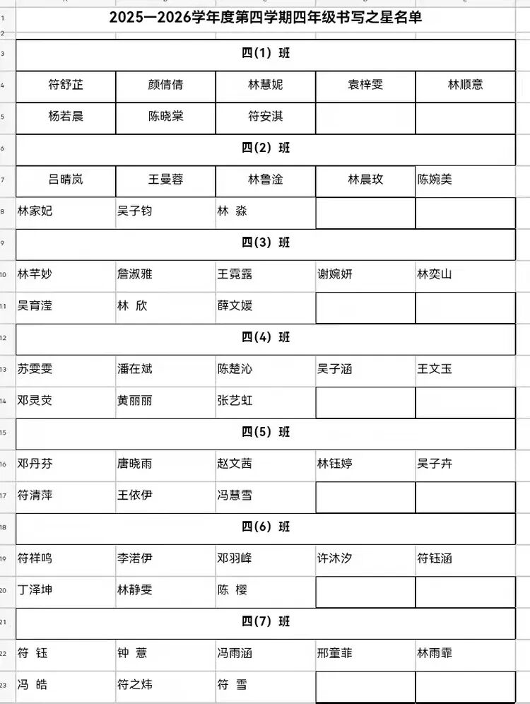 四年级书写之星