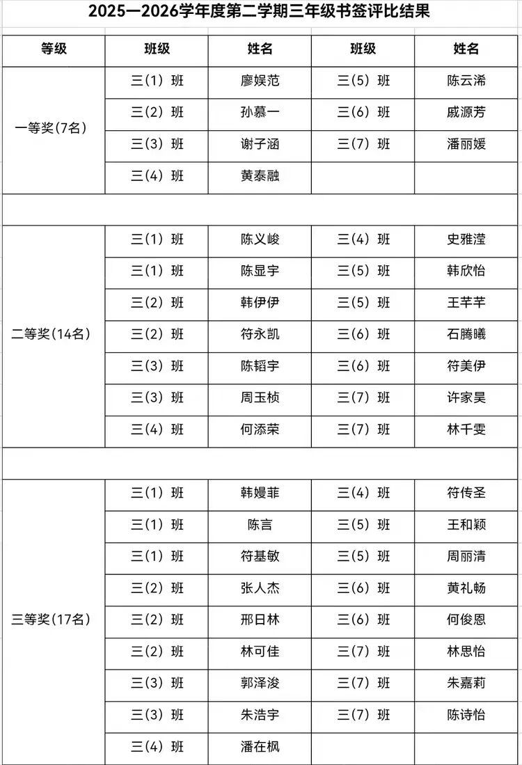 三年级书签之星