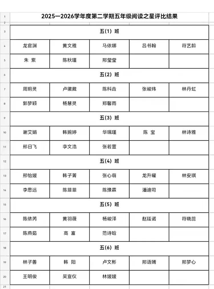 五年级阅读之星