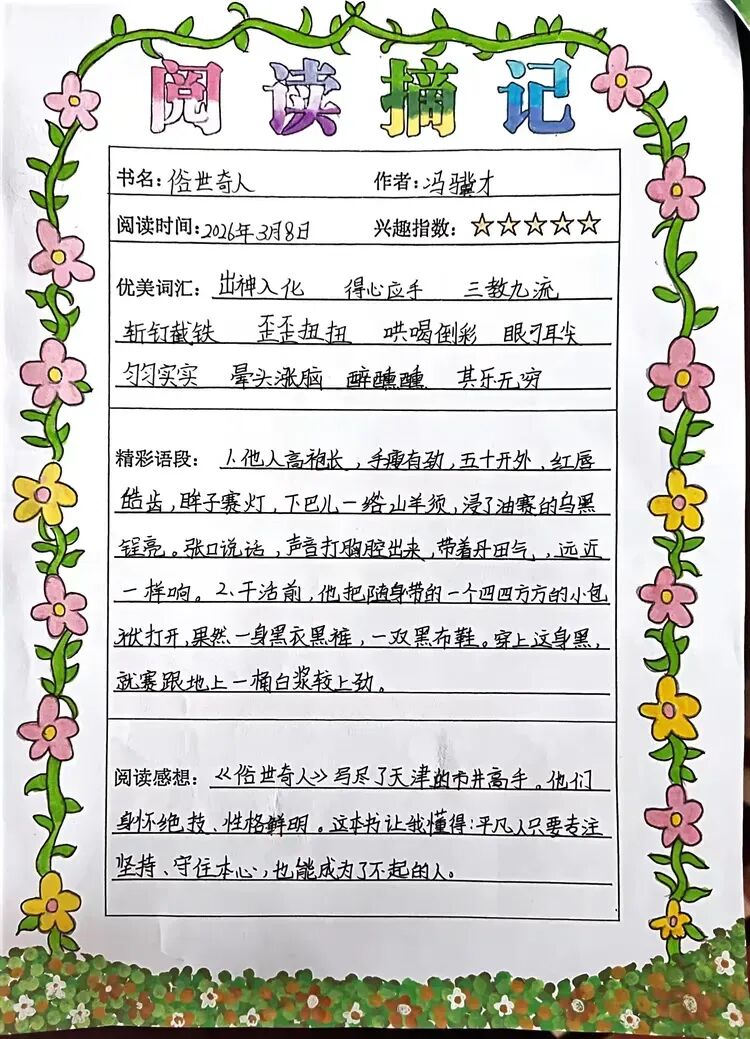 岁末寒假,时光温润,文昌市第一小学的学子们以热爱为笔,以实践为卷,在假期里书写成长、收获美好。一份份创意十足、温暖有趣的特色作业,勾勒出少年们多彩的假期生活,书写之星、厨艺秀、阅读之星、书签之星四大篇章,尽显学子风采,让这个寒假充满书香、烟火与创意。