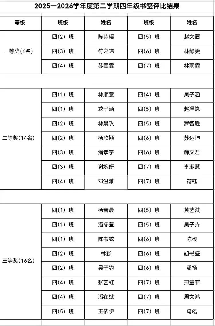 四年级书签之星