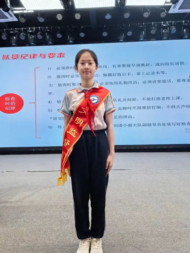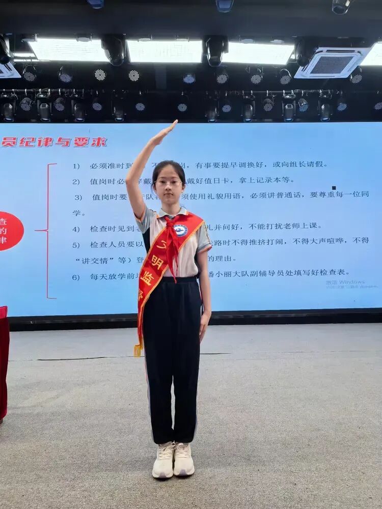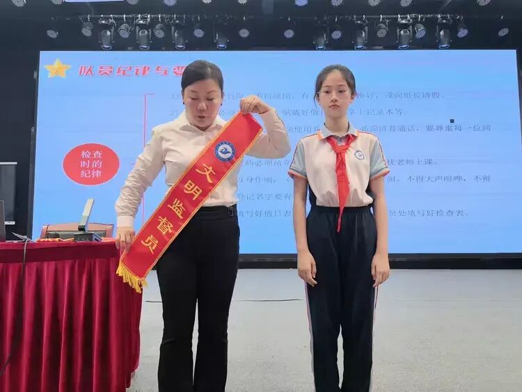 大队副辅导员潘小丽老师向全体新晋文明监督员致以热烈祝贺,明确这份岗位不仅是一份光荣,更是一份担当。作为校园文明的传播者、践行者,更是老师的小助手、校园的小主人,文明监督员的核心是“监督”与“引导”,而非“挑刺”与“指责”,一言一行都要成为同学们的榜样。
