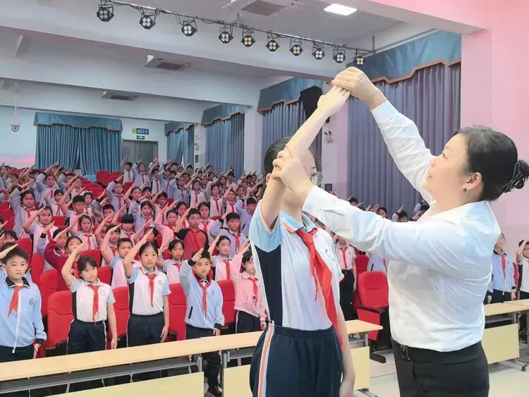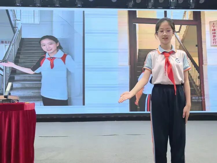 身姿挺拔显风貌,礼仪规范树形象!大队辅导员蔡丽妹老师重点讲解实操技能,针对大厅值岗、楼梯引导、文明提醒等核心场景,逐一示范标准动作:大厅值岗挺胸收腹、遇师敬队礼;楼梯引导站定安全区域、手势轻柔;所有提醒始终微笑沟通,让文明引导更有温度。