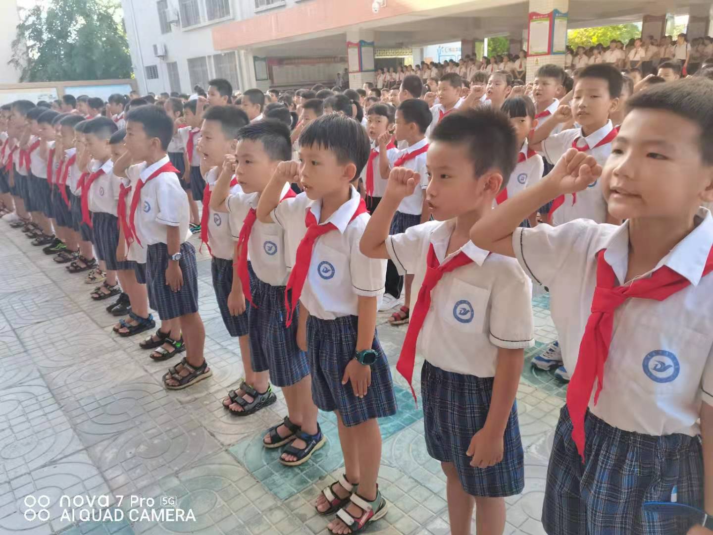 五月,是憧憬与梦想萌发的时节。您瞧!火红的队旗高高飘扬,指引我们前进的方向,鲜红的领巾系满理想,载着我们扬帆远航。 5月28日上午7:30,我校大队部在养正楼前,举行庄严的“2021年文昌市第一小学“童心向党,献礼百年”少先队新队员入队仪式。今天,我校316名一年级学生正式加入了中国少年先锋队,为少先队组织增添了新鲜血液。