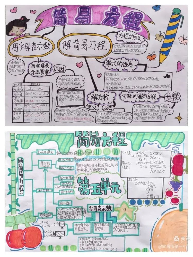 五年级同学的思维导图作业,对数学单元知识进行全面梳理,清晰呈现知识点之间的逻辑关系,是思维与知识的精彩碰撞。
