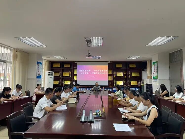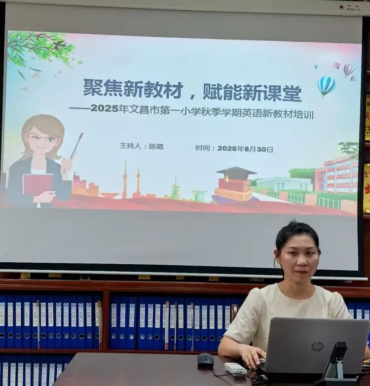 教导处陈璐副教导主讲的《聚焦新教材 赋能新课堂——2025年秋季学期文昌市第一小学英语新教材培训》在会议室开展,为英语组教师梳理单元整体教学,实操情境化活动设计,焕新英语课堂活力。