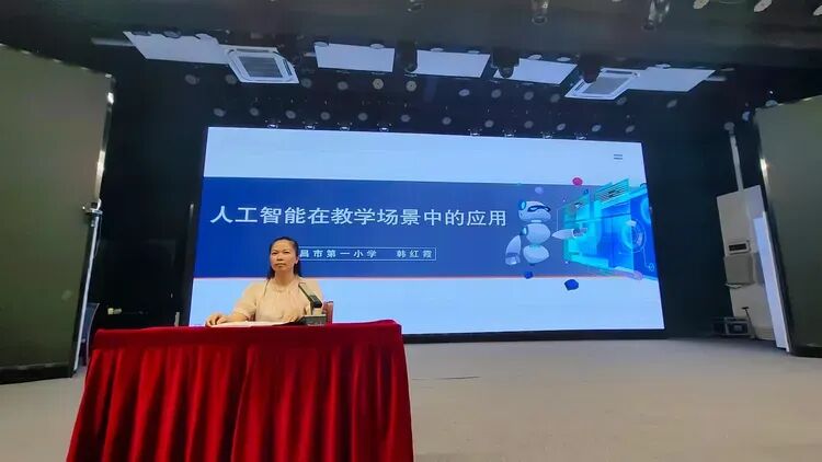 韩红霞老师主讲的《人工智能在教学场景中的应用》培训在和美厅开展。课程传授AI助力教学的技能,从课件制作到作业设计,通过实操助力课堂增效。