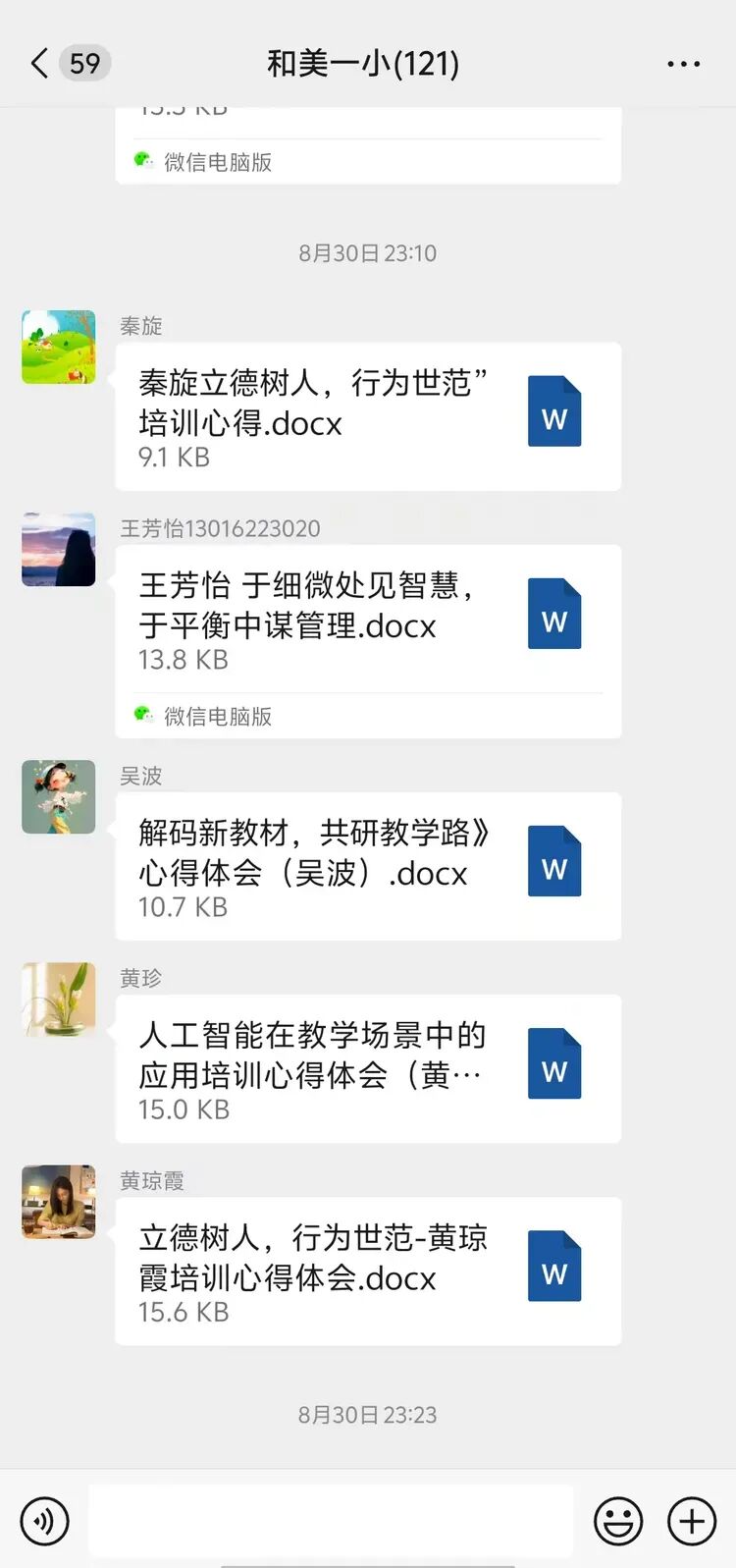 本次培训落幕后,全体教师结合自身所学与教学实际,精心梳理了学习体会与心得感悟,并分享至工作群中。