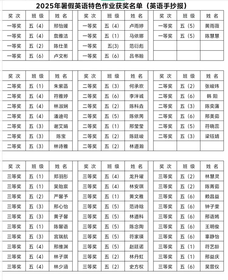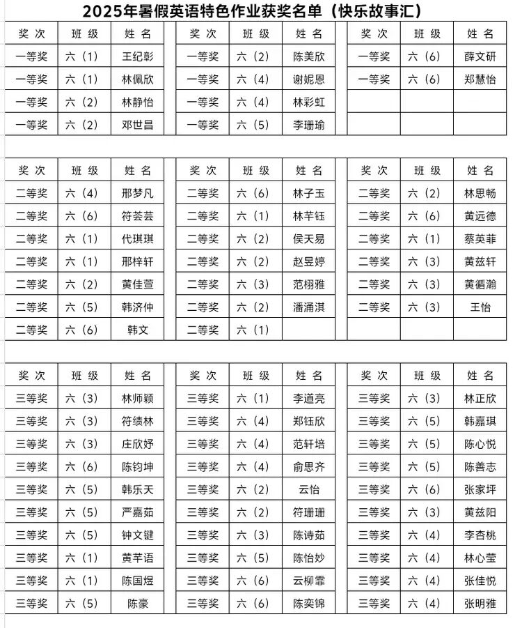 这个夏天,一小学子以英语为钥,开启了探索与成长的奇妙旅程。优秀的成果,是孩子们汗水与智慧的结晶,更是英语学习中最生动的成长注脚。暑意渐消,但学习的热情永不落幕,期待育英学子在未来的英语世界里,继续绽放更多“英”彩!