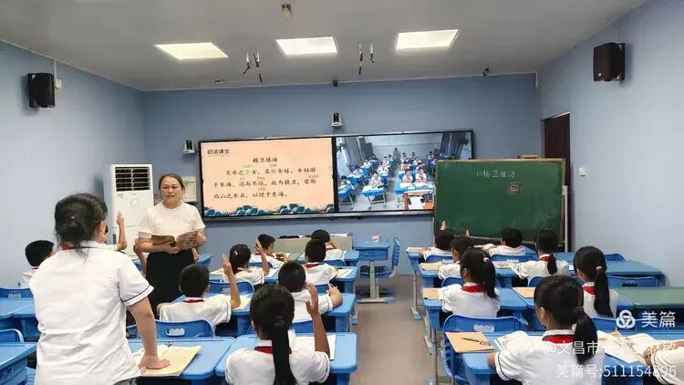 她让学生以同桌互讲、指名复述的形式,将简短的文言文转化为鲜活的故事,当孩子们用稚嫩却清晰的语言,讲出“炎帝的小女儿女娃溺亡东海,化为精卫鸟日夜填海”时,课堂里满是思维碰撞的轻响。