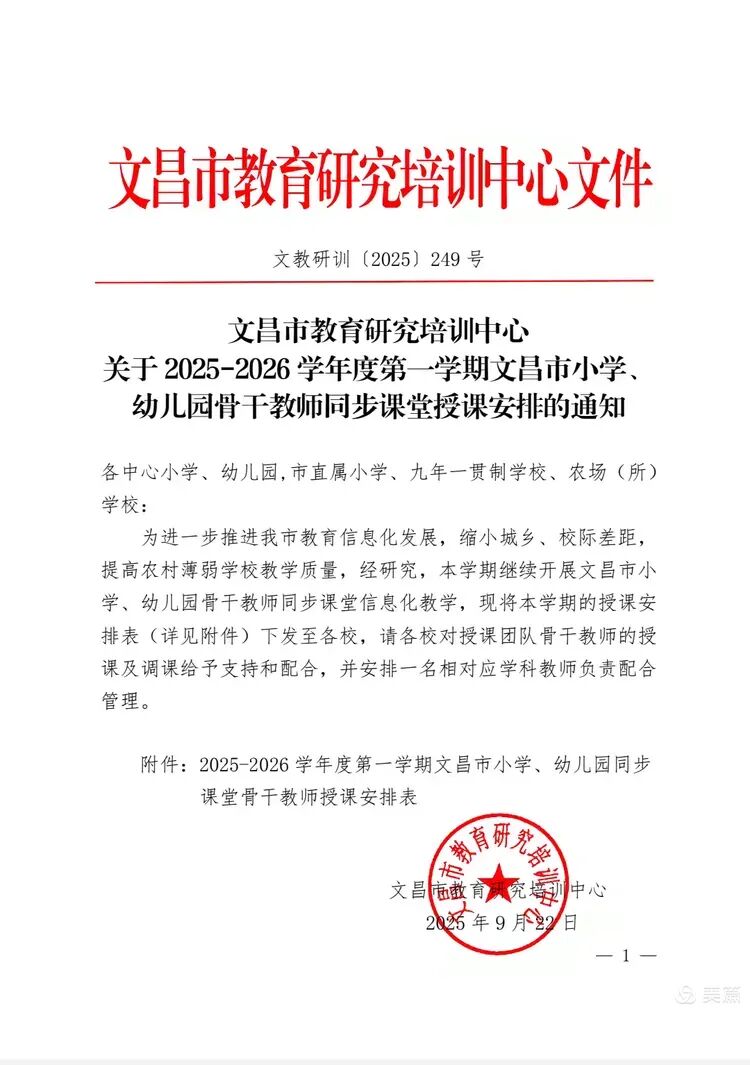 2025-2026学年度第一学期文昌市小学骨干教师同步课堂活动,紧扣“推进教育信息化发展、缩小城乡校际差距、提高农村薄弱学校教学质量”核心任务,统筹协调授课团队保障、校际协同管理等工作,以信息化课堂为载体推动优质教育资源共享,为全市教育均衡发展与教学质量整体提升夯实基础。
