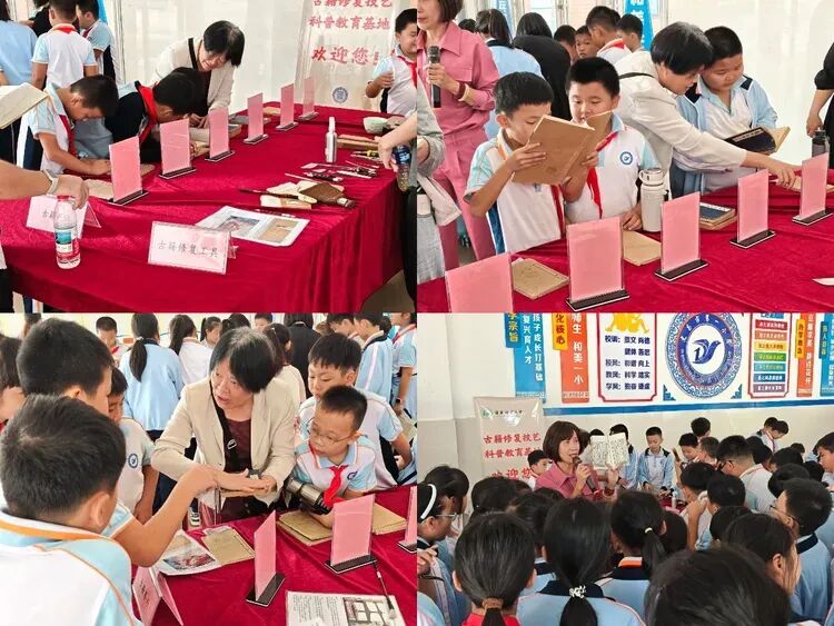 为传承中华千年文脉,提升青少年文化素养,11月13日,海南师范大学图书馆主办的“古籍文化进校园”活动在文昌市第一小学成功举办。活动以“沉浸式体验+可视化展示”为核心,涵盖古籍展示、古籍修复工具陈列及多项活动现场精心设置展示与体验两大板块,以“可视化展示+亲手实践”的方式,引导师生全方位感受古籍文化的深厚底蕴。