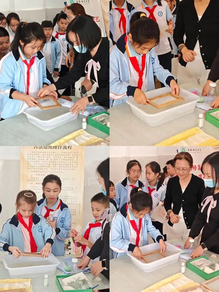 工作人员详细讲解造纸术的历史背景与工艺原理,指导学生亲手完成调纸浆、抄纸成型等工序,制作带有花草纹理的手工纸,让学生在实践中直观感受“四大发明”的智慧结晶与文化价值。