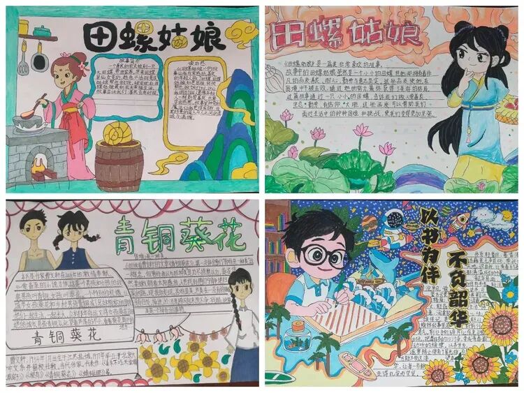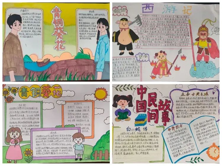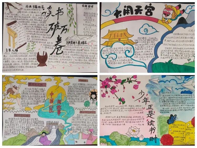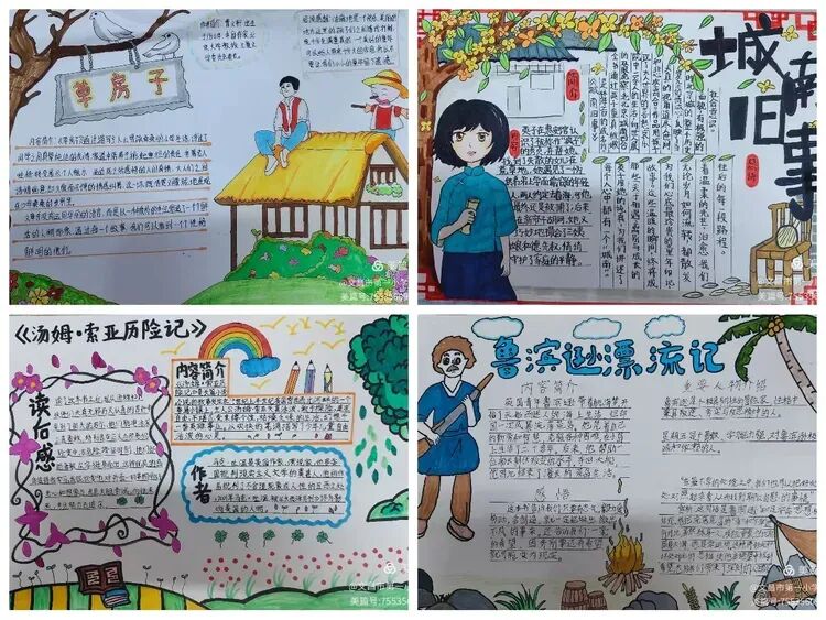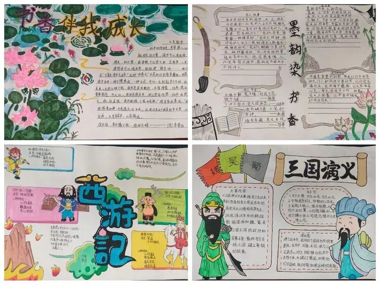 五六年级的书桌前,8K素描纸铺展开来,成了同学们表达阅读的“画布”:有人把阅读的感悟写成细腻的文字,有人把书中的画面画成生动的插画,还有的用板块划分出“书籍亮点”“我的收获”,把对一本书的理解,揉进了笔尖的每一道线条、每一个文字里。每一幅作品都是阅读沉淀后的思考,也是少年们独有的书香表达。