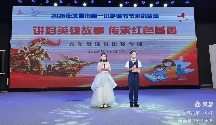 “讲好英雄故事,传承红色基因”——五六年级的选手们站在讲台上,目光坚定又明亮。没有稿子的束缚,他们伴着背景里的老照片与旋律,把那些滚烫的英雄故事,讲得真切又动容。3一5分钟的时间里,声音里的敬意、眼里的光,让红色的精神顺着书香,稳稳落在了每个听众的心里。