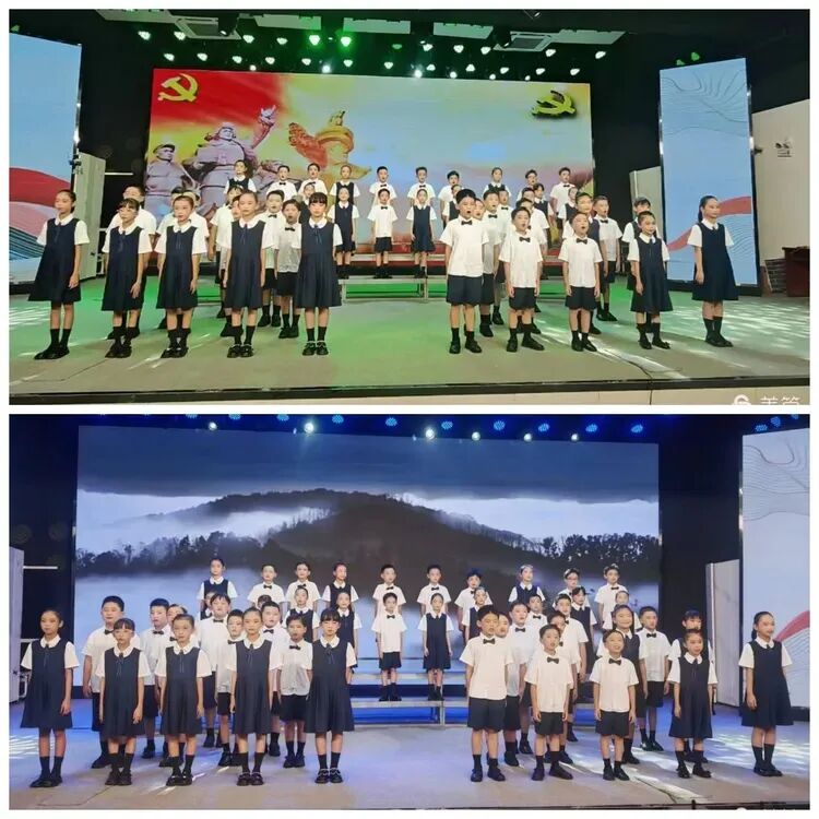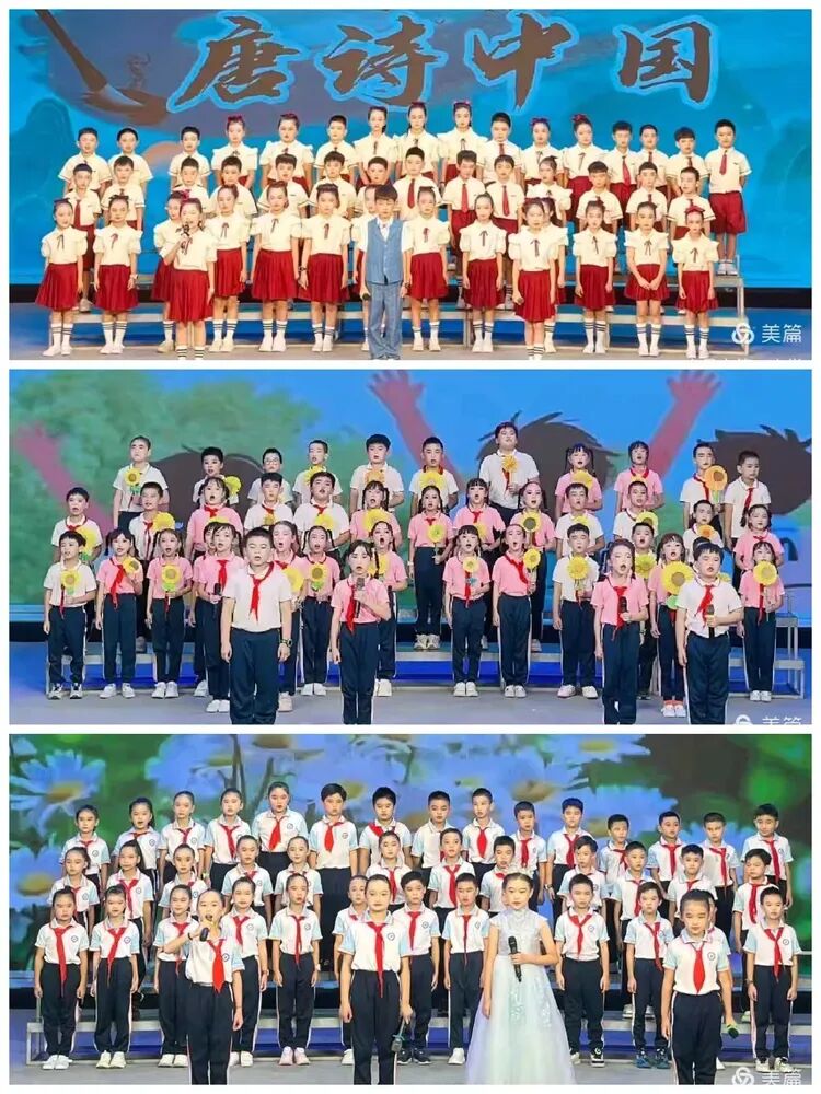 三四年级的同学们身着靓丽的服装,挺直腰背站在和美厅的舞台上。音乐轻起,朗朗书声便顺着节奏流淌开来:时而轻缓柔和,像春风拂过书页;时而铿锵有力,像少年扬起的志气。他们的吐字清晰透亮,停顿里藏着情绪,抬手投足间都是对文字的专注,把经典的韵味,念成了最动听的校园声音。