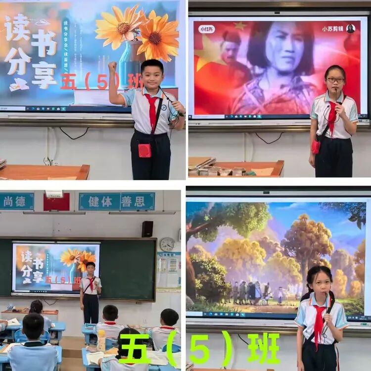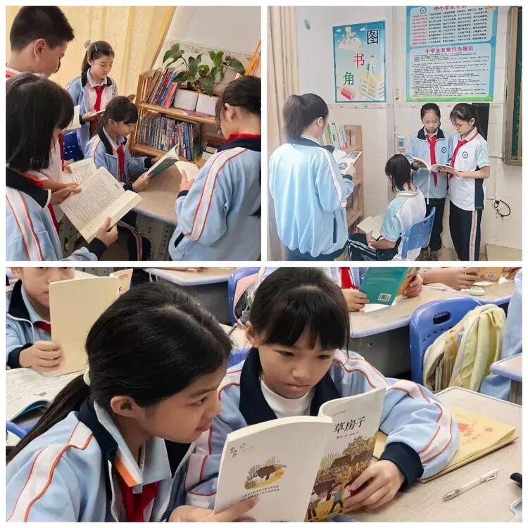 以班级为单位,语文老师带着同学们选定共读书目,教室里时而响起老师领读的声音,时而传来同伴互读的讨论。大家学着在书页间画批注、在笔记本上写摘要,把读到的心动时刻都藏进文字里。第8周的分享会上,低年级同学抢着说“最让我开心的情节”,高年级同学认真聊“这本书教会我的事”,每个角落都飘着热腾腾的交流声,把“阅读”从一人的安静,变成了一群人的热闹。