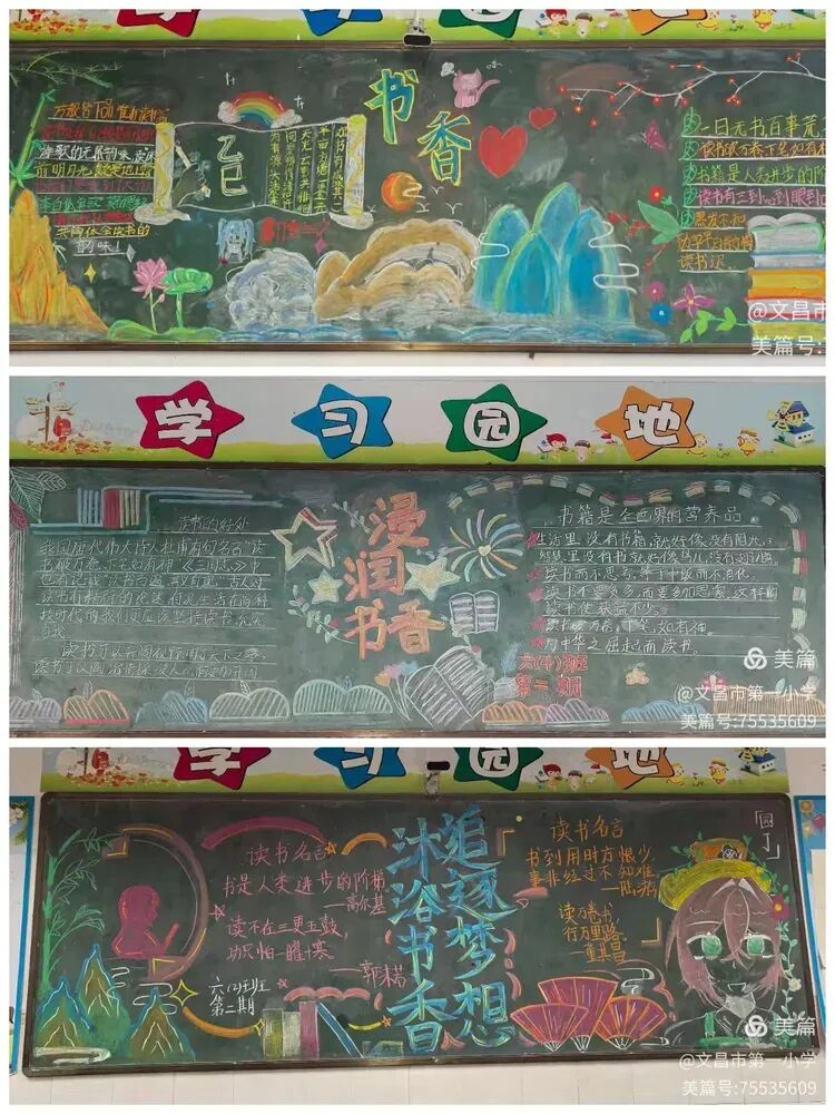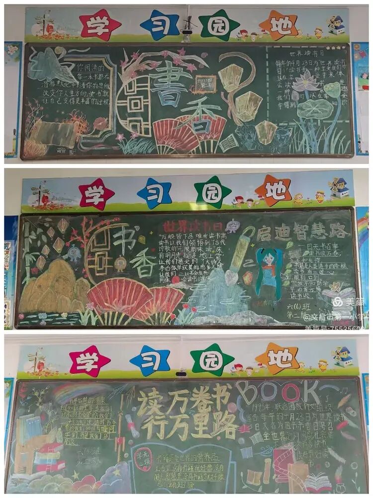 读书节的号角刚响,各班级就热闹了起来:图书角里新添的书籍摆得整整齐齐,黑板则成了创意的舞台——有的班级画满灵动的阅读插画,有的写满隽永的读书名言,还有的用彩笔勾勒出“阅读时光”的温馨场景。五彩的版面裹着墨香,让每间教室都成了藏着书香的小世界。