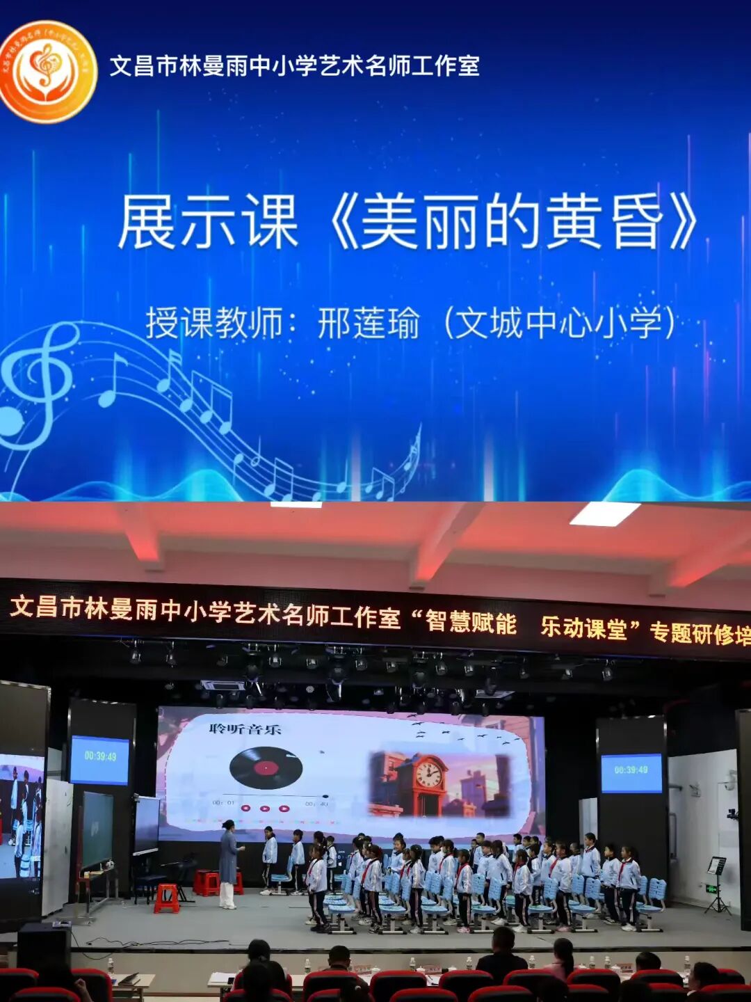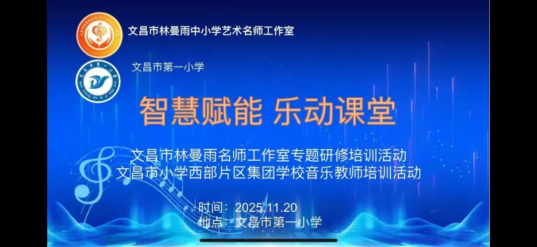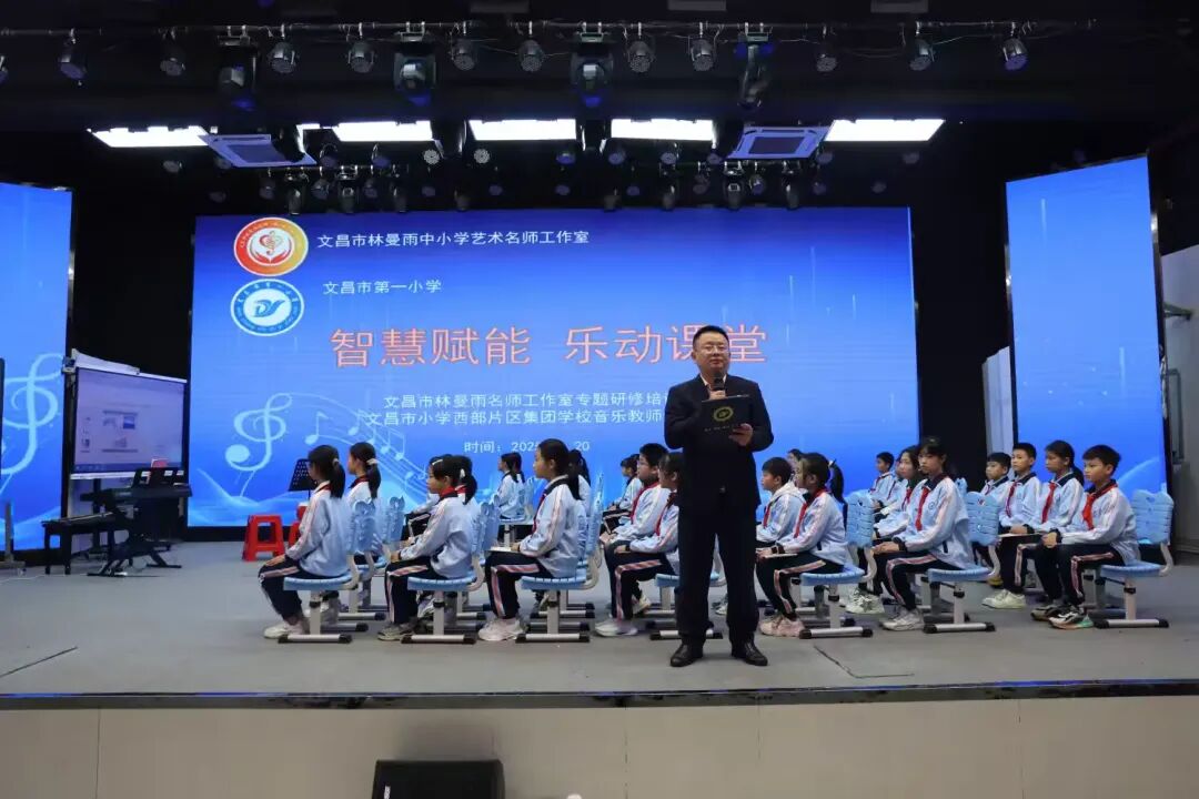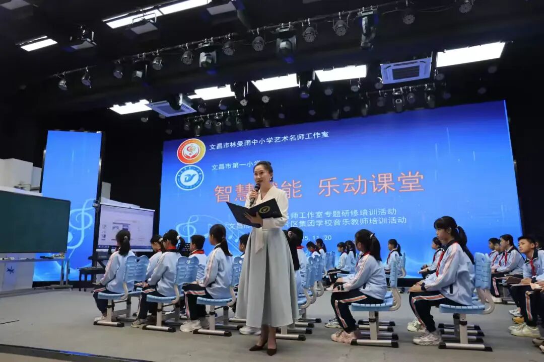 为充分发挥名师工作室的专业引领与示范辐射作用,进一步提升音乐教师的课堂教学能力,助力其专业成长,2025年11月20日下午,由文昌市林曼雨名师工作室与文昌市小学西部片区集团学校音乐教师联合举办的 “智慧赋能·乐动课堂”专题研修培训活动,在文昌市第一小学和美厅举行。