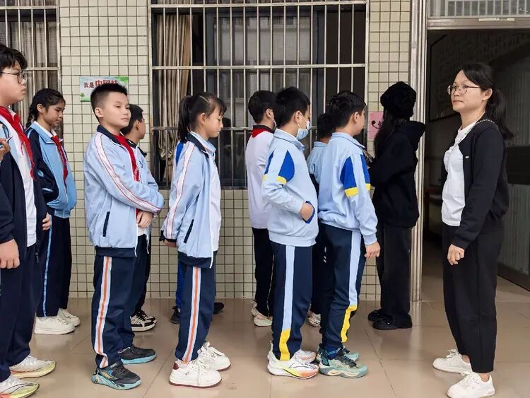 候场门口,林芸老师与罗晓亚老师悉心引领,参赛同学们列队整齐、身姿挺拔。孩子们眼神专注又藏着期待,静静伫立准备就绪,每一个规整的站姿都透着守纪的模样,只待入场指令,便奔赴赛场绽放思维光彩~