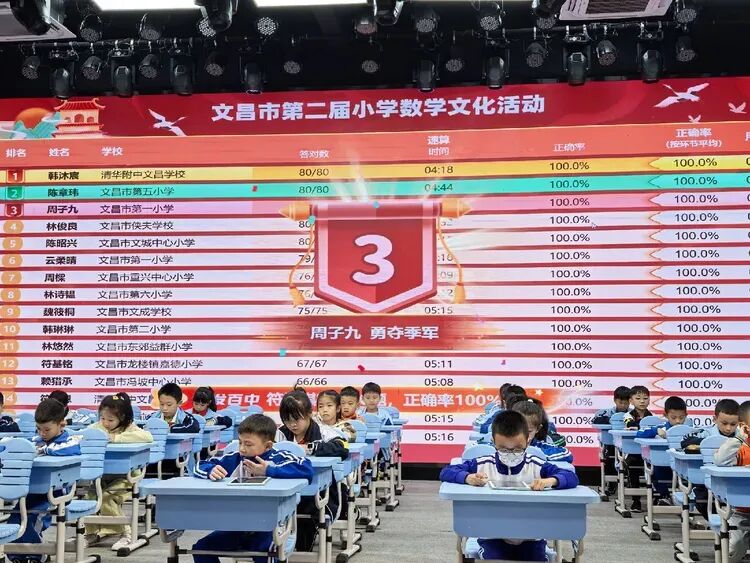 赛事全景:思维竞速的公开公正。各项赛事在科技助力下如火如荼展开,大屏幕上实时滚动的成绩榜单,以“答对数、用时、正确率”的透明化呈现,诠释着“公开公正”的赛事精神,家长与带队老师在场下安静观赛,为孩子们的每一次进步默默喝彩。