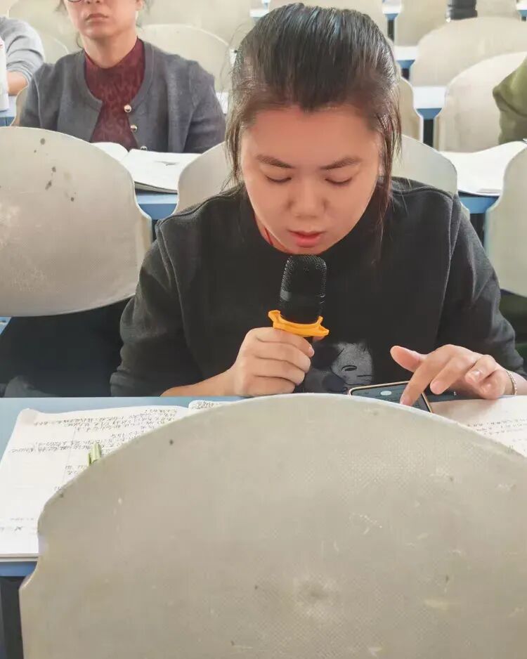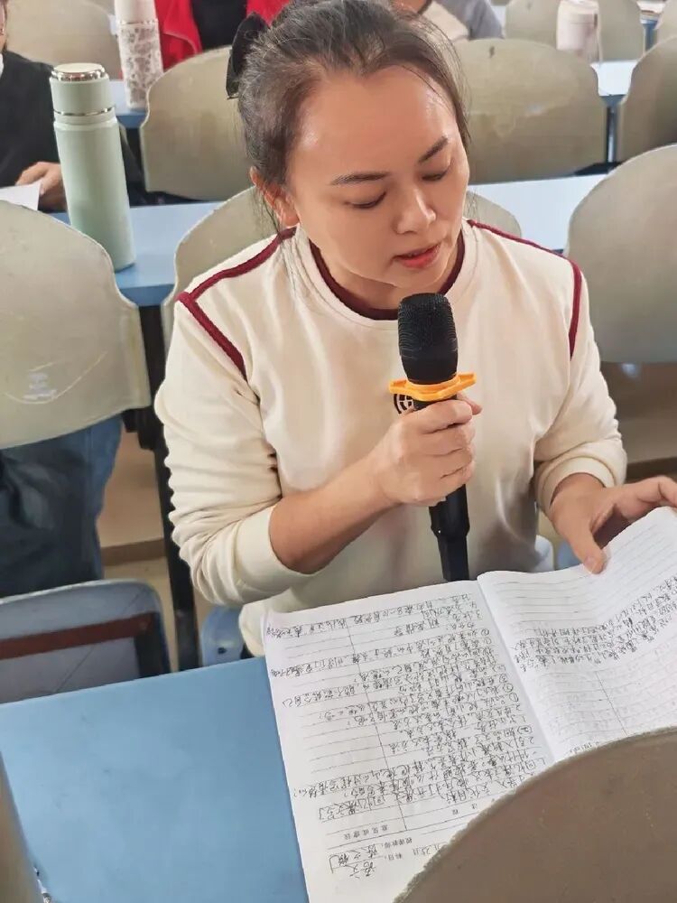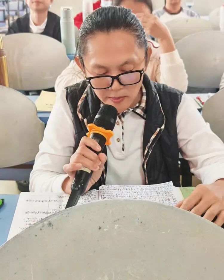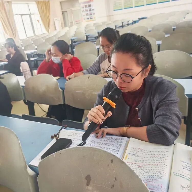 台下听课教师专注记录,时而为精准的关键词句解读点头赞许,时而为“三维引导”的教学设计提笔标注。