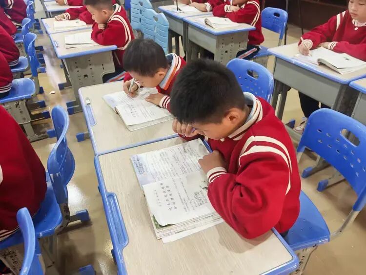 四年级语文组全体老师端坐后排,神情专注,时而低头认真记录教学环节与细节,时而抬头观察课堂互动与学生状态,时而提笔标注可优化的教学节点,全程沉浸式参与磨课过程,为后续精准评课、靶向提建议做好充分准备。